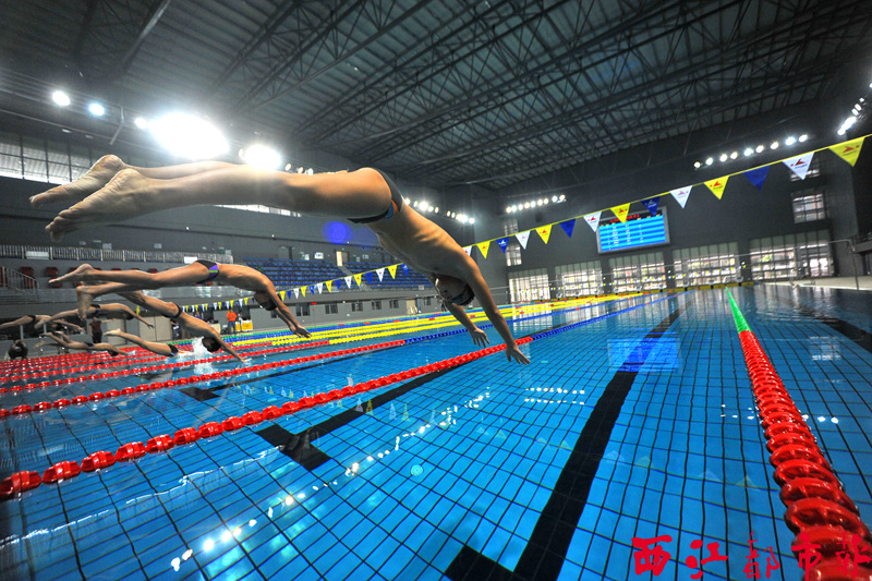 10月17日,梧州游泳隊運動員在梧州市游泳(跳水)館50米標準泳池內進行模擬比賽,協助新建成的游泳(跳水)館進行聯合調度測試。經測試,梧州市游泳(跳水)館符合比賽要求。何鎏 攝 |