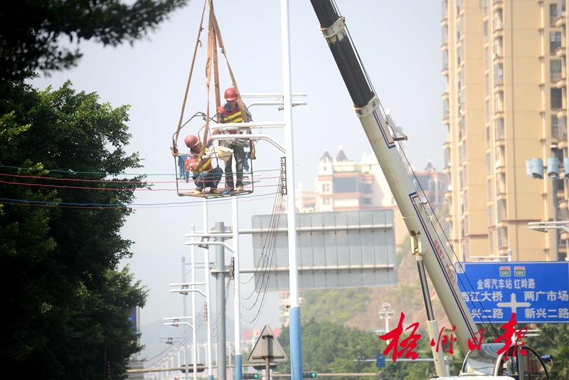?隨著廣西第十三屆運動會的臨近,市路燈管理部門近段時間安排多支工程隊伍,除了更換部分破損路燈之外,還對市內各主要道路、橋梁的路燈、燈桿粉刷一新,以良好市容市貌迎接區運會。 李鴻榮 攝