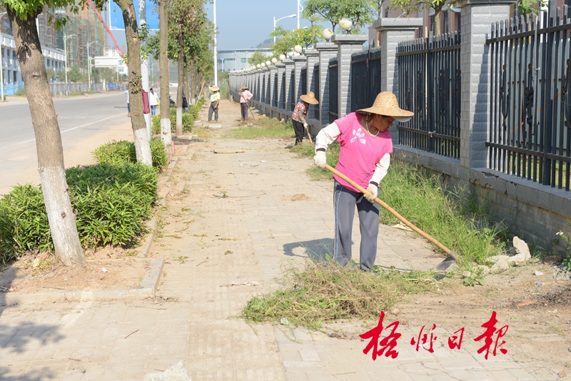 ??? 近日,在梧州職業(yè)學院附近,工人正清理人行道上的雜草。