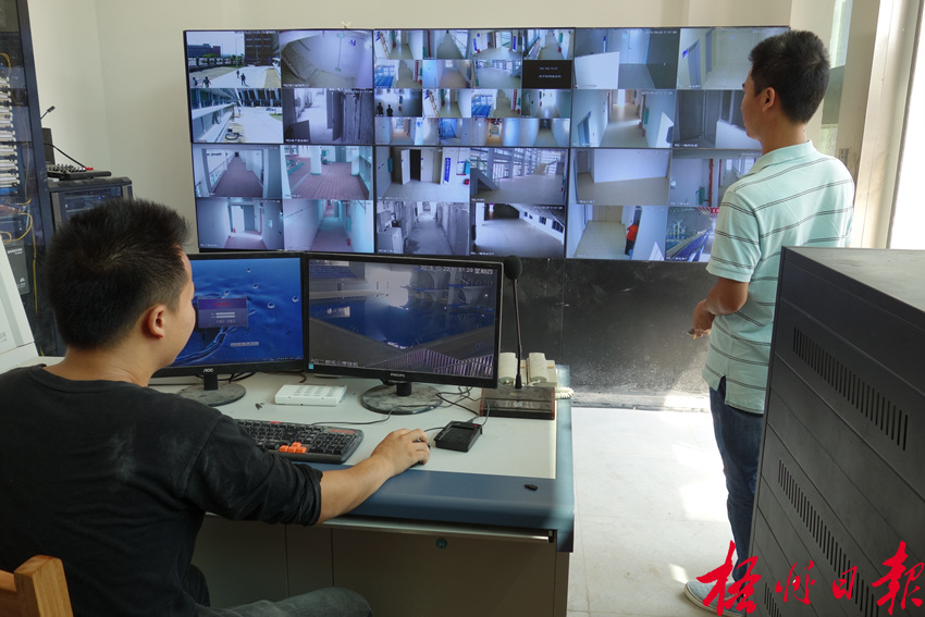 ????10月22日,在梧州市游泳(跳水)館控制室,工作人員通過(guò)智能化監(jiān)控系統(tǒng)查看場(chǎng)館內(nèi)外環(huán)境。