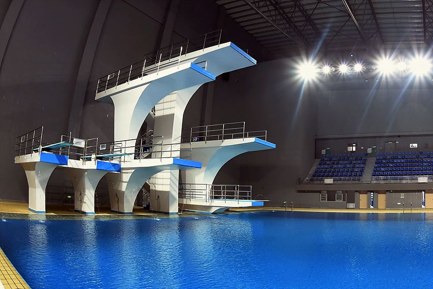 梧州市游泳(跳水)館是第十三屆區運會新建比賽場館,分為游泳比賽區、跳水比賽區、熱身練習池、放松池,其設計標準為可以滿足游泳、跳水、花樣游泳、水球等各類全國性運動會和單項國際比賽,非賽時間可作為水上活動中心。10月16日,該館順利通過竣工驗收。圖為通過驗收的梧州市游泳(跳水)館(攝于10月21日)。 孟亞西 攝