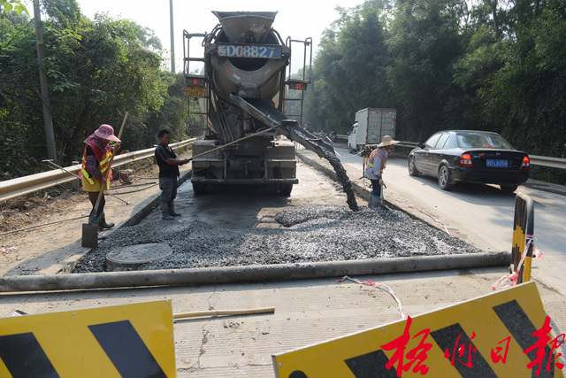 ????據(jù)了解,云龍大橋至西江大橋南橋頭道路大修工程已開展大半個(gè)月,目前下行的半幅車道受損路板已基本完成修復(fù),重新澆筑了水泥混凝土,上行的半幅道路正在施工。該維修工程力爭(zhēng)在第十三屆區(qū)運(yùn)會(huì)開幕前完成。 李鴻榮 攝