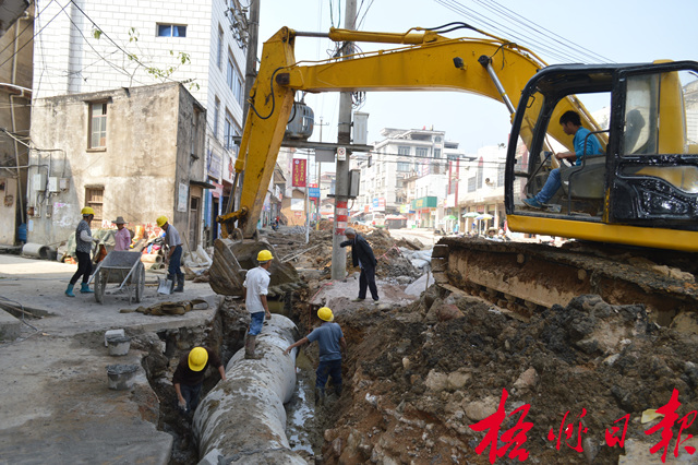 ????10月25日,在蒙山縣文圩鎮(zhèn)居民區(qū)外圍,工人們正在埋設(shè)排污管道。