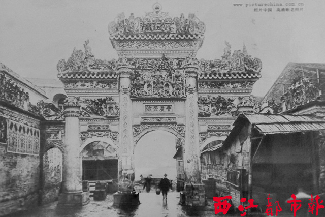 由外國攝影師拍攝的梧州三界廟牌坊老照片。