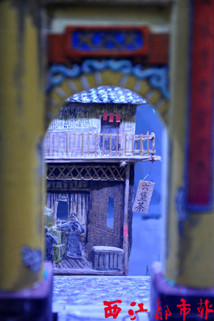 ????模型不僅再現了牌坊當時大致的顏色、環境,并將周邊的小店鋪,吊腳樓加以重現,甚至按照原址準確地再現了位于允升塔附近的梧州山頭,作為參照物的江邊小船、路過挑夫更是栩栩如生,做工非常精巧。