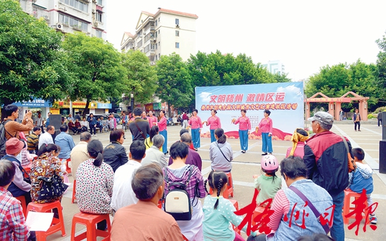 ??? 此次活動由市委宣傳部、市文明辦主辦,市群藝館以及萬秀、長洲、龍圩宣傳部門承辦。第十三屆區運會舉辦期間,文藝巡演將在萬秀區、長洲區、龍圩區各社區舉行30多場,以提高市民對創建全國文明城市工作的知曉率和參與度。 李鴻榮 攝