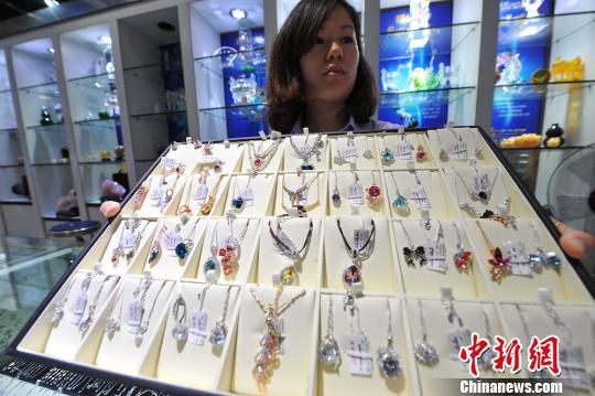 圖為梧州寶石城內的各類寶石飾品。 胡雁 攝