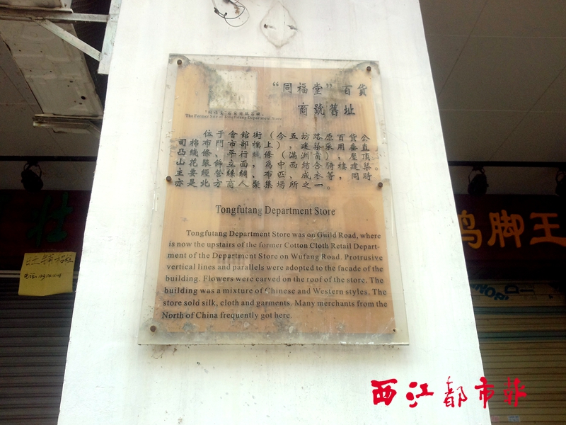 ????在五坊路,記者看到騎樓城建筑的柱子上有一塊介紹“萬源生”百貨商號的銘牌,圖片已經模糊不清,上面還沾著許多污漬。而臨近的一塊介紹“德隆號”布匹絲綢店舊址的銘牌,圖片已經變成一張“白紙”,還有點點霉點滲透在表面。走到九坊路,有幾塊銘牌由于雨水滲入的原因,不僅圖片看不見,且大部分文字內容已經被污漬覆蓋。同樣,位于大中路、大南路、居仁路等多個路段的大部分銘牌,也出現了邊角破損,圖片文字發黃模糊,污漬斑斑的情況。這些銘牌已經失去了介紹遺址的宣傳功效。