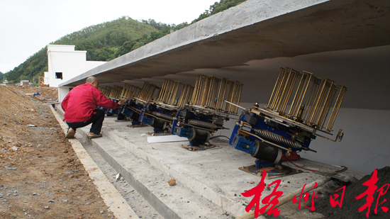 飛碟比賽場地正在加緊施工,圖為已安裝的飛碟彈射器。