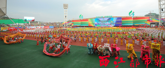 ????西江都市報(bào)訊(記者 謝韻)11月7日下午,梧州市中恒體育場里,伴隨著節(jié)奏明快的開幕式音樂響起的是觀眾席此起彼伏的掌聲和歡呼聲。看著綠蔭場上的國旗方隊(duì)、區(qū)運(yùn)會(huì)會(huì)旗以及裁判員、運(yùn)動(dòng)員方隊(duì)的出場,氣勢恢宏的千人文體表演,觀眾們感到激動(dòng)、震撼的同時(shí),也更因其含有的梧州元素而感動(dòng)、自豪。