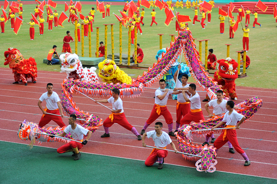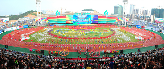 《運(yùn)動八桂 追夢梧州》文體表演,把開幕式推向了高潮。 11月7日15時,廣西第十三屆運(yùn)動會在梧州市中恒體育場隆重開幕。這是梧州市迄今承辦的規(guī)模最大、規(guī)格最高、影響最廣的大型體育賽事,近6000名八桂健兒齊聚在此,共同見證和參與這場體育盛會。 西江都市報(bào)記者 陳健新/攝