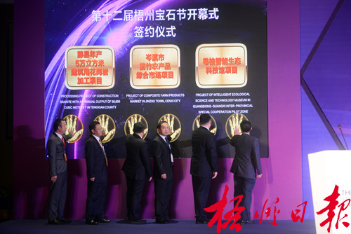 十二年的歷程,梧州寶石節(jié)在成長,也在進行與時俱進的調(diào)整,但發(fā)展的主題、合作的理念始終未變。本屆寶石節(jié)開幕之際,十二個重大項目現(xiàn)場簽約——十二年、十二屆、十二項,寓意著傳承,更寓意著發(fā)展。當簽約代表手觸LED屏幕時,大屏幕上禮花飛舞,預(yù)示著項目合作多姿多彩、前程似錦。