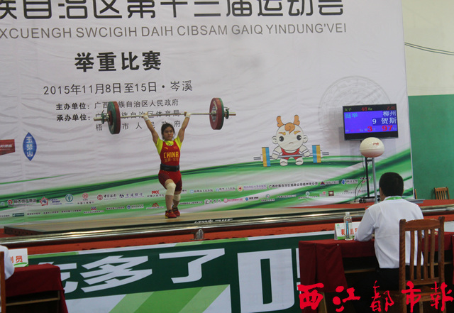 ????西江都市報訊 11月9日上午,廣西第十三屆運動會女子舉重比賽進入了第二個比賽日,在岑溪市體育運動學校綜合訓練館內分別進行了女子乙組44公斤級、48公斤級以及女子甲組44公斤級比賽。