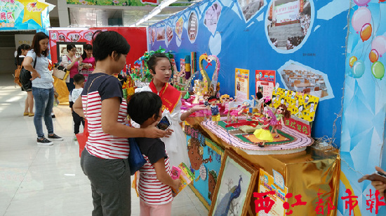 ????在龍圩區展區里,正在給市民講解作品、走起路來一瘸一拐的小解說員黎瀟雨引起了記者的注意。經了解,黎瀟雨是第一實驗小學四年級的學生,兩天前,她到蒼海湖玩滑板車時,不小心摔傷了腿。瀟雨的母親姚女士表示,她原本想讓女兒放棄參加此次的活動,但女兒卻說為了這次的活動她準備了足足兩周,不想輕易放棄,自己也被女兒的勇敢堅強感動了。