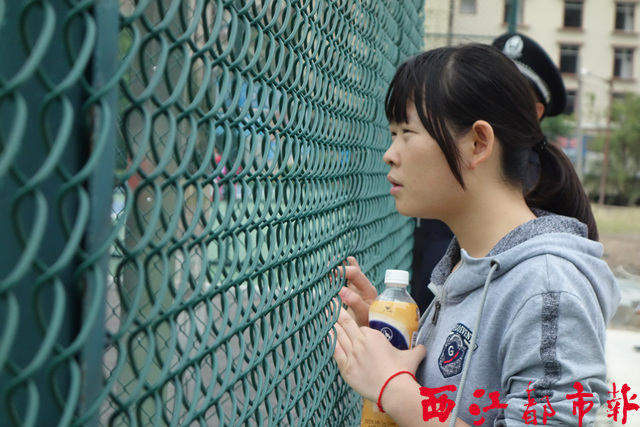 ????11月10日下午,青少年組網(wǎng)球比賽進入白熱化的比賽階段,吸引了眾多觀眾觀看。圖為一名觀眾隔著網(wǎng)墻專注地觀看比賽。 謝韻/攝