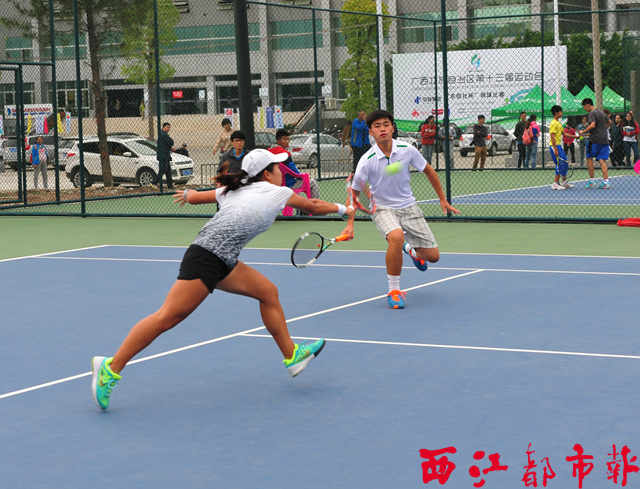 ????西江都市報訊(記者 謝韻)11月10日下午,廣西第十三屆運動會青少年組網(wǎng)球項目雙打比賽進入決賽。梧州隊的江魏、楊佳琦組合,以6∶2、6∶1完勝對手,取得青少年組網(wǎng)球項目混雙比賽的第一名。而男雙、女雙比賽的第一名,均被南寧隊收入囊中。