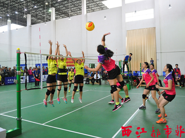 11月11日,在女子氣排球的比賽中,貴港市隊與南寧鐵路局體協隊展開激烈對攻。 西江都市報記者 陳健新/攝