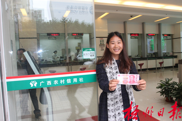 ????梧州日?qǐng)?bào)訊(記者 陳曉雯) 11月12日,備受關(guān)注的2015年版第五套人民幣100元紙幣運(yùn)抵全市各銀行業(yè)金融機(jī)構(gòu)網(wǎng)點(diǎn),想“嘗鮮”的市民紛紛通過(guò)柜臺(tái)或ATM機(jī)兌取。