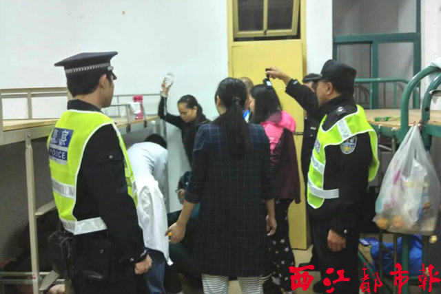????接到求助后,正在執勤的梧州市公安局機場派出所民警石贊和另一名民警馬上趕赴事發現場。在區運村二區宿舍7棟410房,匆匆趕來的民警看見一名婦女躺在床上,身體抽搐,口吐白沫,已陷入半暈迷狀態。