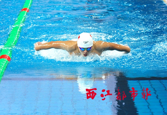 梧州“飛魚”魚斌在男子乙組400米個人混合泳決賽中。 陳健新/攝