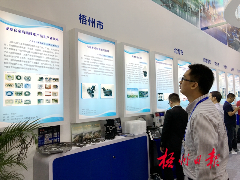 ????梧州代表團參展的三項高新技術成果,分別是鴻圖精密壓鑄有限公司的汽車發動機精密壓鑄件、港德硬質合金制造有限公司的硬質合金高端技術產品生產新技術、恩吉科技有限公司的獵鷹智慧云系統。上述參展項目在各自領域處于領先地位,其中汽車發動機精密壓鑄件具備有效密封機軸、防止曲軸調節系統漏油等功能;硬質合金高端技術產品成型尺寸及精度準確率高,能為各行業量身定做高端技術產品;獵鷹智慧云系統能滿足不同環境下的安防應用需求,集智能分析、車牌提取于一體。