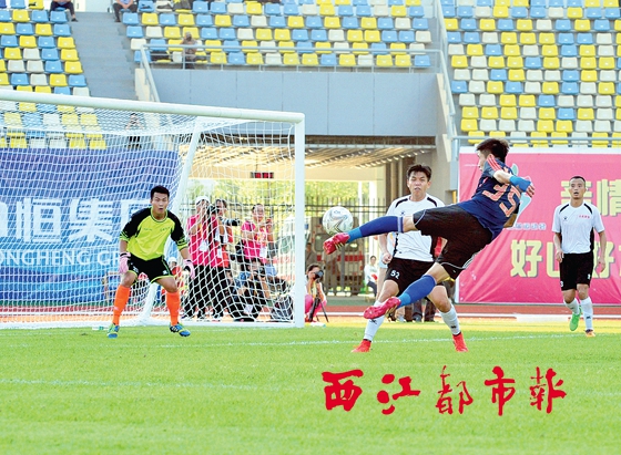 ????此后,柳州隊并未乘勝追擊,而是擺出了“鐵桶陣”,打起防守反擊戰術。失球后的玉林隊不得不大舉全線壓出,猛攻對方禁區,無奈破門乏術,一直未能追平比分。