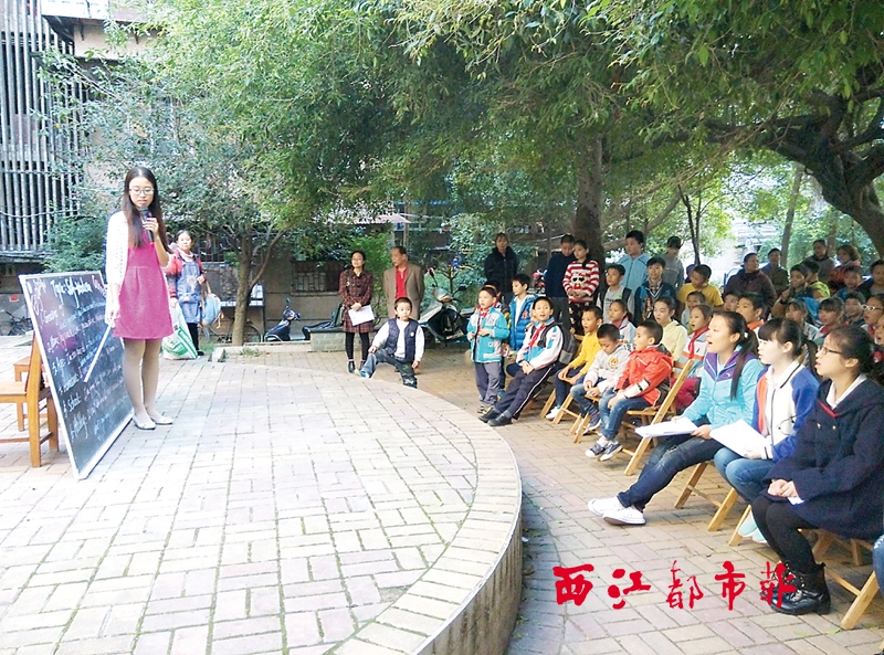 “I come from GuiLin(我來自桂林)”、“my hometown is WuZhou(我的家鄉是梧州)”……當天下午,下沖社區的部分居民以及30多位來自逸夫小學的學生,端坐在下沖小游園,在志愿者的帶領下認真地用英語互相交流。雖然彼此的英語發音及語法還不是很準確,但是大家分別為自己起了流行的英文名字,交流得特別起勁。