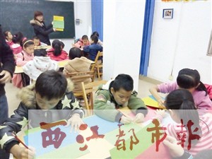 ????來自市青少年宮的青年志愿者在新興社區開設“七彩課堂”,為該社區的貧困家庭兒童、留守兒童和外來務工子女,開展趣味英語和美術手工課。當天,志愿者老師把趣味英語和手工相結合,新穎、好玩的教學引起了學生們極大的興趣。