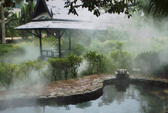 ????早上,從梧州搭乘旅游巴士前往茂名市電白縣的御水古溫泉度假村,車程約需要5小時。在這里我們可以欣賞到美輪美奐的山石之美,只見景區(qū)四周群山環(huán)抱,山上巨石崢嶸,造型各異,令人嘆為觀止。御水古溫泉度假村內(nèi),一花一草、一池一亭皆美景,這里按AAAA級景區(qū)、四星級酒店標(biāo)準(zhǔn)建造,是茂名地區(qū)目前規(guī)模最大、檔次最高、功能最齊全、管理最規(guī)范、服務(wù)最周到的溫泉文化旅游度假村之一。度假村設(shè)有巴厘島風(fēng)情的溫泉池區(qū)43個形狀不一、功能各異的溫泉池錯落有致地分布在綠樹林蔭之中。溫泉泡浴、溫泉沖浪、溫泉SPA、溫泉魚療、溫泉磁沙、養(yǎng)生保健、干濕蒸、水上拓展等項目一應(yīng)俱全。