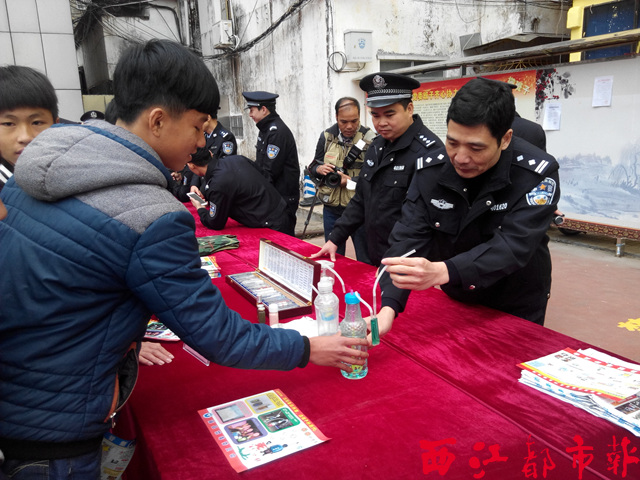 當天的活動中,公安民警向參觀者展示毒品吸食工具,提醒群眾防范毒品、拒絕毒品。西江都市報記者 黃海志/攝