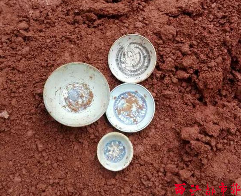 據悉,當日,一個工程施工隊在該村進行挖掘土方施工時,挖掘機挖掘出一批瓷器。記者在現場上看到,這批瓷器共有十多只碗、碟,大的碗口直徑約20厘米,小的碟子直徑約5厘米,碗、碟的內面均有類似鳥類的花紋,但圖案中的鳥看不出是什么鳥類。據施工方介紹,當時,碗、碟是處于地下一米多深的位置,從地表及周圍的情形看,并未發現有墳墓之類的標志。