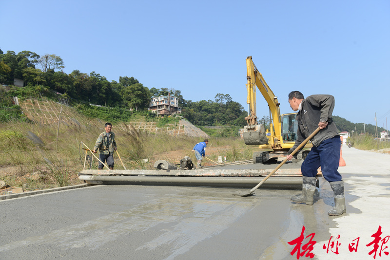 ?????12月16日,在白云路,工人正鋪設水泥路面。