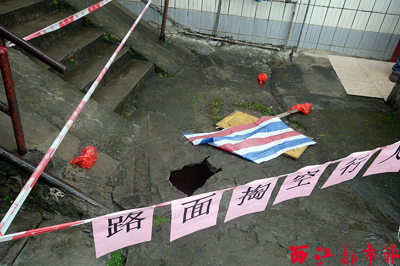 ????當天12點30分,萬秀區地災辦的工作人員李先生聞訊趕到現場,仔細檢查現場塌陷情況。據李先生介紹,經初步判斷,此次路面塌陷排除地質災害的可能性,主因或為地下排水渠年久失修破裂所致。排水渠因變形致其承載層剝落,外滲的水體不斷沖刷周邊的水土,致水土流失,最終導致土層上方路面塌陷。