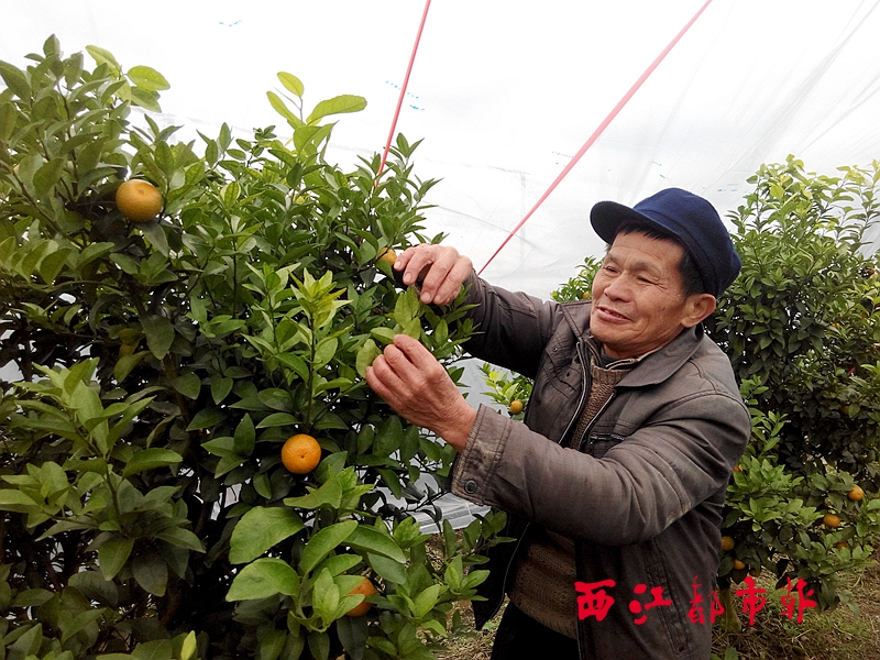 ????見到68歲的林瑞信時(shí),他正在自家的砂糖橘園里查看著果樹掛果的情況。已是深冬時(shí)節(jié),近期陰雨連綿,林瑞信前幾天剛為果樹覆蓋塑料薄膜,防霜防凍保果。塑料薄膜下,株株砂糖橘樹上都掛滿了的沉甸甸果實(shí)。