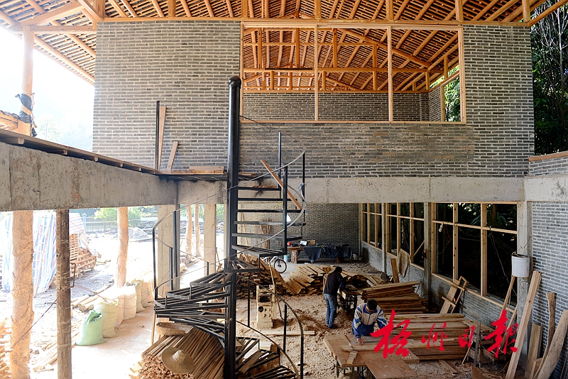 ??? 12月25日,在摩天嶺生態農業旅游體驗基地,工人正進行建筑內部裝修。