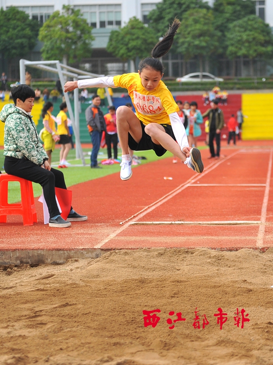 ?12月28日,選手在小學組女子跳遠項目中騰空。本報記者 何鎏/攝