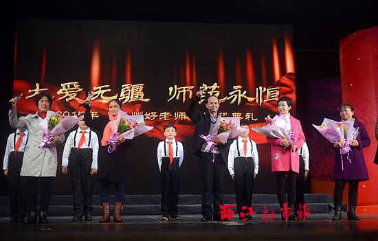西江都市報(bào)訊(記者 萬立平 )12月30日晚,由梧州市委宣傳部、市文明辦、市教育局、市文新廣電局等聯(lián)合舉行的“梧州好老師”頒獎(jiǎng)典禮,在梧州市文化展覽中心舉行,20名教師榮獲2015年“梧州好老師”殊榮。