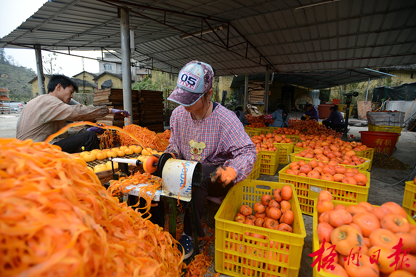 12月28日,在蒙山縣祥日果品有限公司,工人正在加工柿子。據了解,蒙山縣新圩鎮種植的柿子今年喜獲豐收。近段時間,該鎮古皮新村的果品有限公司加緊把從農戶手中收購來的柿子進行晾曬、加工,每天加工的柿子近5000公斤,用以制作柿子餅、柿子丁。 李鴻榮 攝