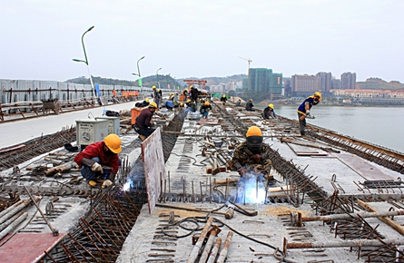 工作人員正為桂江一橋河西橋頭橋底的污水直排口整治點,安裝一體化污水提升泵站。 謝韻/攝