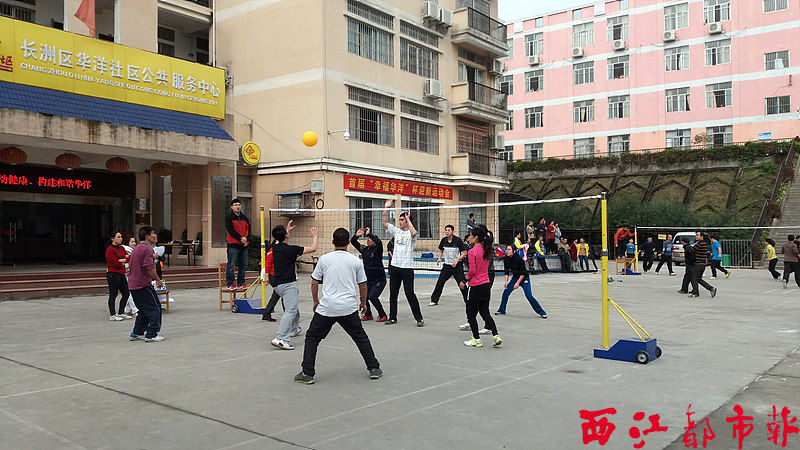 2015年12月31日,梧州市內多個社區舉辦豐富多彩的文體活動,以迎接2016年元旦的到來。圖為華洋社區舉辦首屆“幸福華洋”杯運動會,與“雙報到”單位職工、轄區居民一起開展氣排球等多項比賽。 西江都市報記者 紀榮蘭/攝