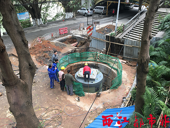 當(dāng)天,記者在桂江一橋河西橋頭橋底看到,用于安放一體化污水提升泵站的井,以及相關(guān)的截流管網(wǎng)都已經(jīng)建設(shè)完畢。吊機(jī)正在將一體化污水提升泵站運(yùn)輸?shù)揭粋€深為6米、直徑為4米的大坑之中。據(jù)現(xiàn)場工作人員介紹,該處直排口整治會建設(shè)兩個截流井以及一個一體化污水提升泵站,通過將污水截流至泵站,然后利用泵站將污水輸送到第一污水處理廠的方式,防止污水直排入江。