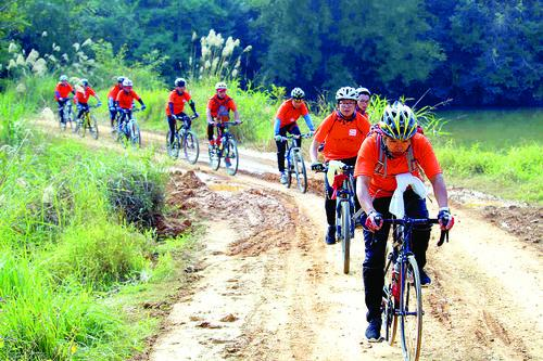 ????當天上午9點半,參加“普通休閑線”的市民在各自領隊的帶領下,有秩序地從起點出發。半個小時后,市民們陸續到達風光優美的泗洲村,并在泗洲村進行了環島騎行。