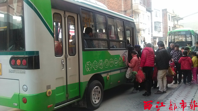 2016年1月1日,市民在龍圩區忠義街搭乘6路純電動公交車。