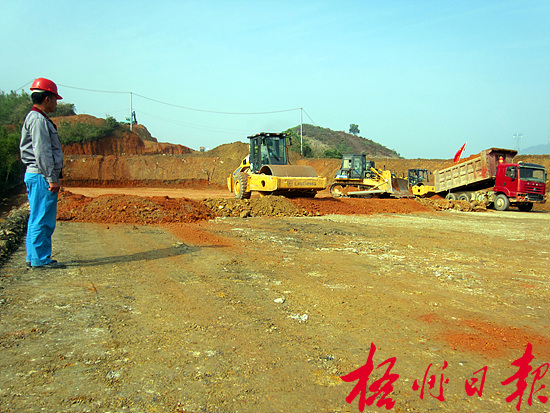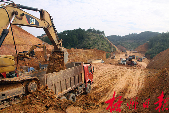 1月1日,在梧(州)柳(州)高速公路藤縣段,大型機械正在進行路基的挖方填土。當日是元旦小長假第一天,藤縣各重點建設項目工程的建設者放棄假期,加班加點奮戰在建設工地一線,搶時間、趕進度,在生產一線度過佳節。 黃群禮 攝
