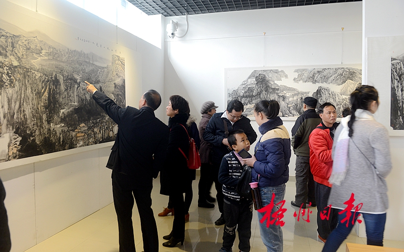 ??? 1月9日,在市美術館,市民正欣賞山水畫作品。