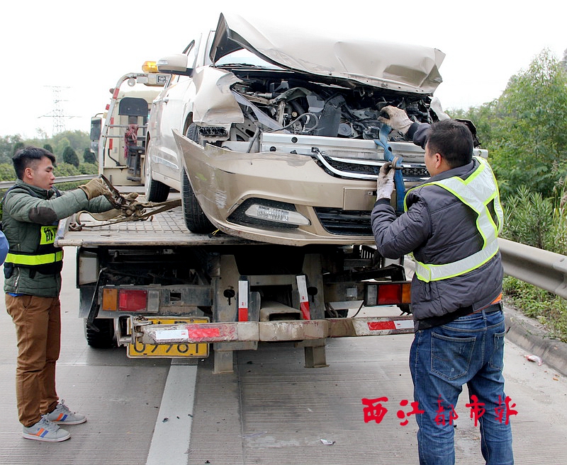 ????1月9日上午10時,市民賴先生駕駛一輛小車在G80廣昆高速行駛,當車輛行駛到梧州往廣州方向198KM時,后方有車輛超車,由于賴先生首次上高速缺乏經驗,操作不當,撞上路邊防護欄,導致小車車頭嚴重變形,幸好車上人員沒有大礙。