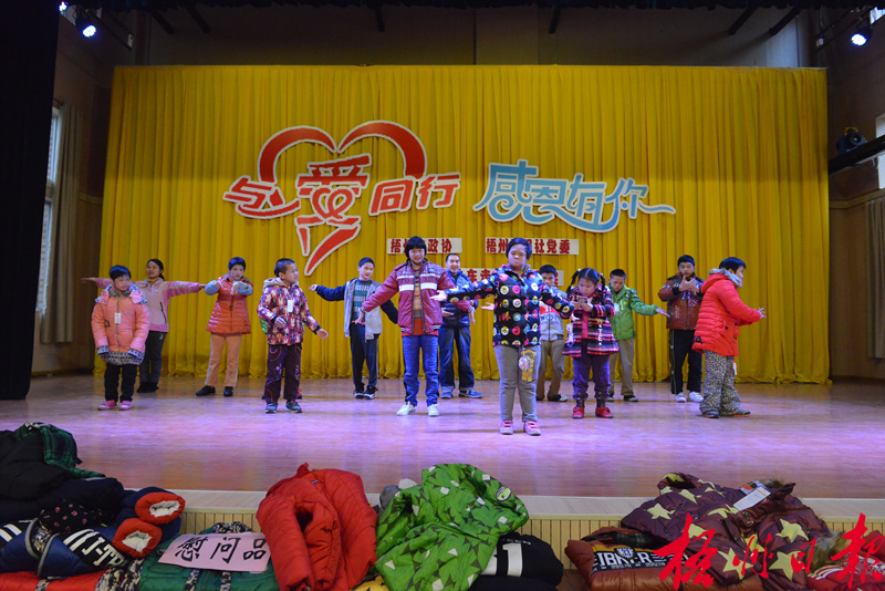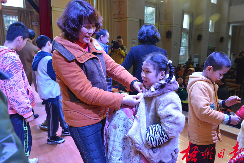 ????在歲末的寒冬,天氣陰冷,氣溫低迷。梧州市福利院的禮堂里,卻是一片熱鬧溫暖的景象。由奧潔小朋友表演的舞蹈《小蘋果》拉開了當天“與愛同行,感恩有你”活動的序幕。臺下坐著福利院的老人和小朋友,他們都被這支輕松歡樂的舞蹈逗樂了,有些小朋友也跟著音樂的節拍手舞足蹈起來。就在奧潔小朋友跳著《小蘋果》時,由梧州市政協和梧州日報社黨委的愛心代表組成的愛心隊伍來到了現場,從愛心車上拿來小朋友們最愛吃的砂糖橘、香蕉、棒棒糖等食物。奧潔小朋友表演完節目走下臺看到愛心隊伍心情很激動,開心地走過去向這些叔叔阿姨問好,雖然她說話的聲音含糊不清,但讓人感受到她對愛心隊伍那份熱情。福利院書記周進忠告訴記者,小奧潔是唐氏綜合癥患兒,但她對音樂和色彩非常敏感,福利院老師也根據她身上這個亮點開發她的潛力。小奧潔平時性格開朗活潑,喜歡唱歌跳舞。