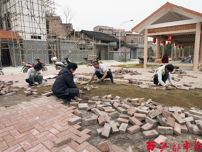 1月19日,古殿組的村民在村里鋪設(shè)地磚,完善村里的基礎(chǔ)設(shè)施條件。 西江都市報(bào)記者 陳健新/攝