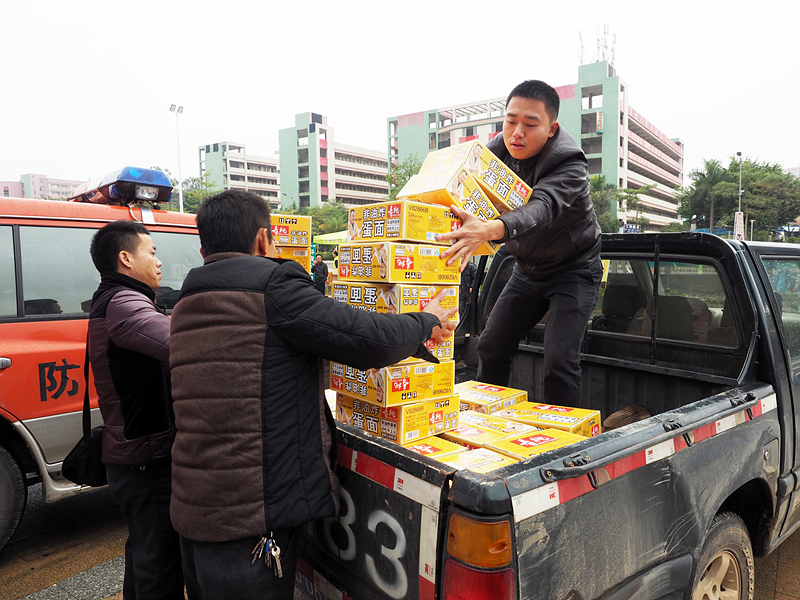 倒水鎮(zhèn)路桐村的第一書記和村委干部把慰問物品裝上車,運送到貧困村的村民家中。陳健新/攝