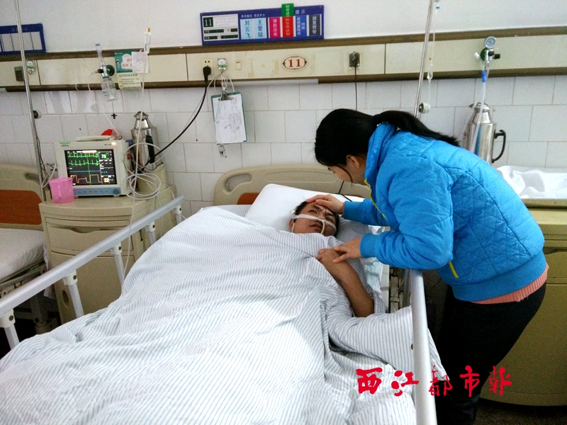 ????1月22日,記者來到梧州市桂東人民醫院看到,黃自文躺在病床上,雙手被布條綁在了床的護欄上,而他的左手則緊緊抓住妻子李冰嫻的手,眼睛一閉一合地,已不像之前那般無神。“這樣綁住是為了避免他的手亂動時,不小心弄掉身上的管子。”李冰嫻說,丈夫的右手恢復較好,左手雖然有力,卻不受控制,力度也拿捏不準,抓到東西會亂拔?,F在,丈夫的情況有了好轉,已經能說話了。但因為他腦部神經損壞嚴重,智力受到嚴重影響,現在只能說一些簡單的字詞。